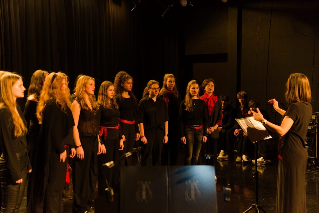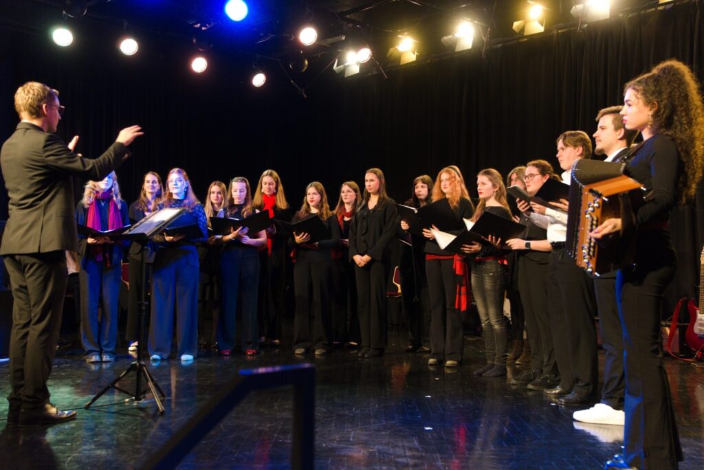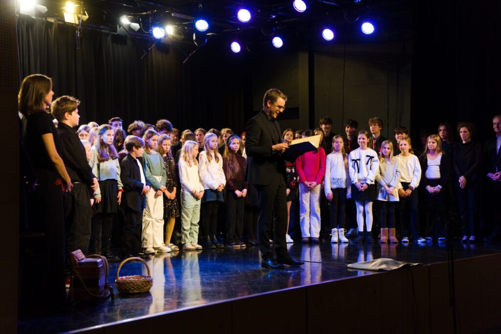 Am 16. Dezember fand im Festsaal unserer Schule das heurige Adventkonzert statt. Unter der Gesamtleitung von Prof. Schmid und Prof. Klieber präsentierten zahlreiche Schülerinnen und Schüler ein abwechslungsreiches und eindrucksvolles Programm: Zu hören waren Gesangsdarbietungen vom Ober- und Unterstufenchor und Vokalensembles, E-Gitarren-Gruppen, Klassenchöre sowie vielfältige instrumentale Beiträge. Das musikalische Spektrum reichte dabei von klassischer Musik über Volksmusik bis hin zu Rock’n’Roll und spiegelte die große Vielfalt und das hohe Engagement der Mitwirkenden wider.