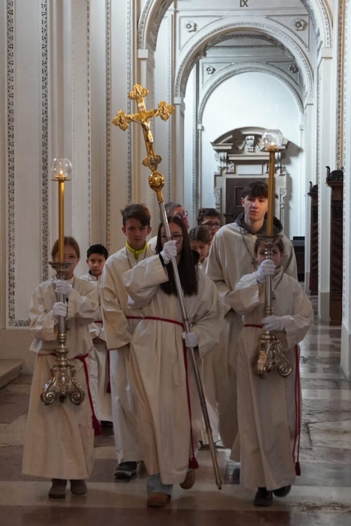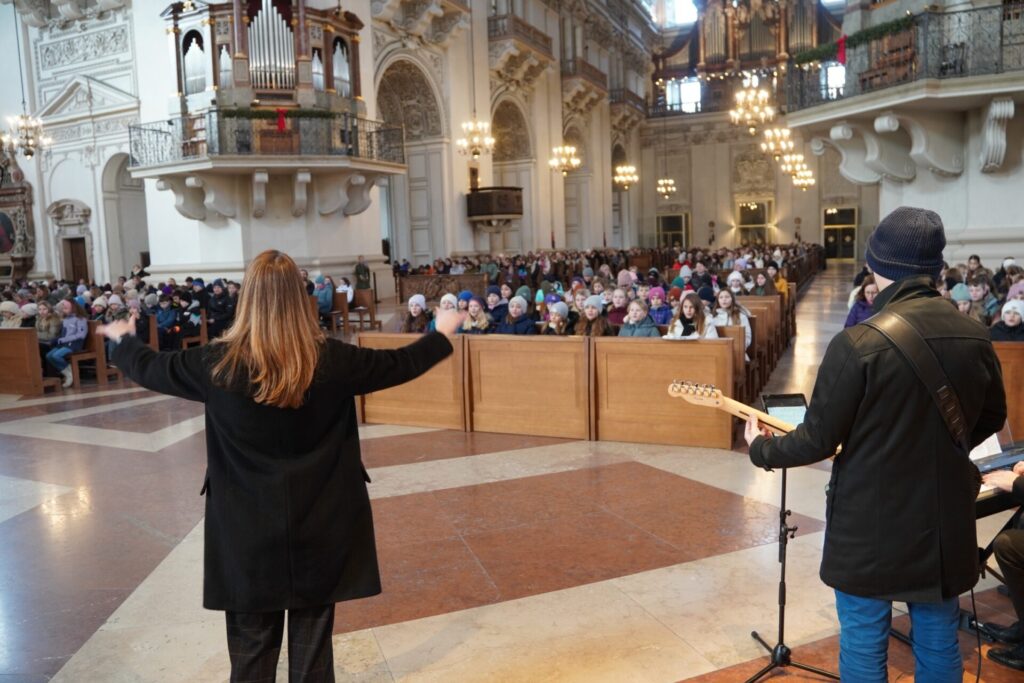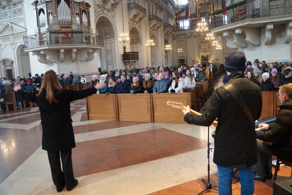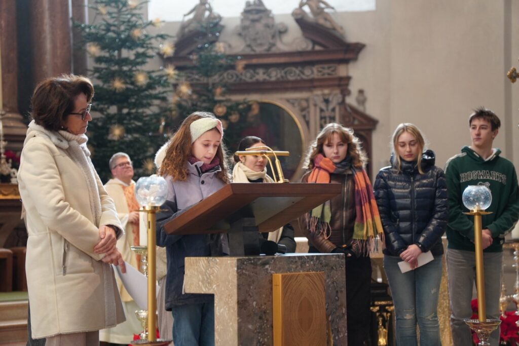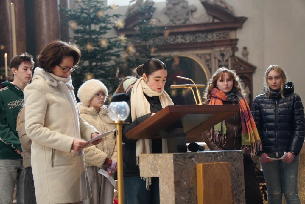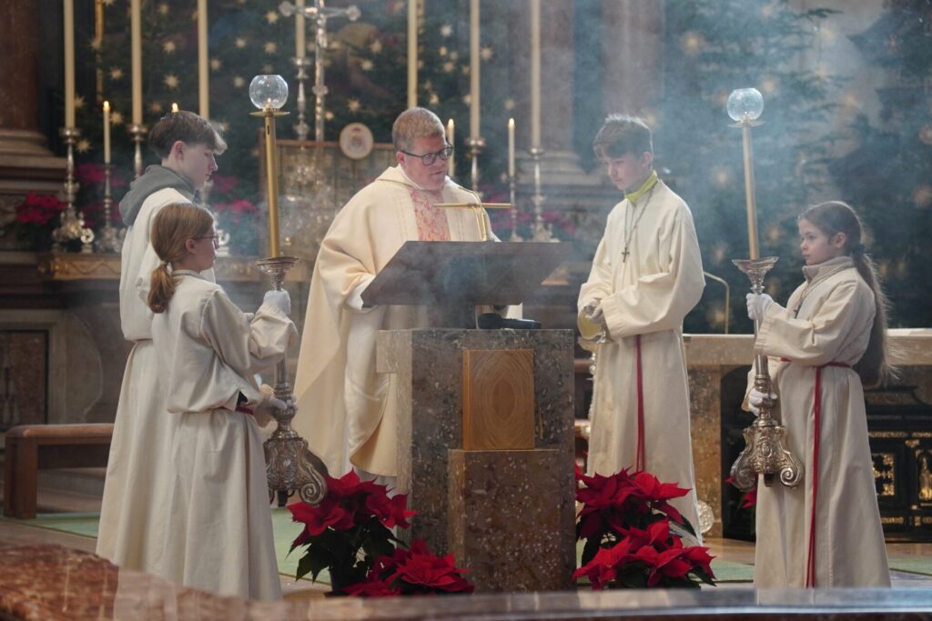 Bei strahlendem Sonnenschein und klirrender Kälte durften wir bereits zum vierten Mal unseren Angelagottesdienst im Dom feiern. Zum ersten Mal begleitete uns dabei Pater Virgil aus St. Peter, der mit seiner herzlichen, bayrisch-lockeren Art der Messe eine ganz besondere Atmosphäre verlieh.