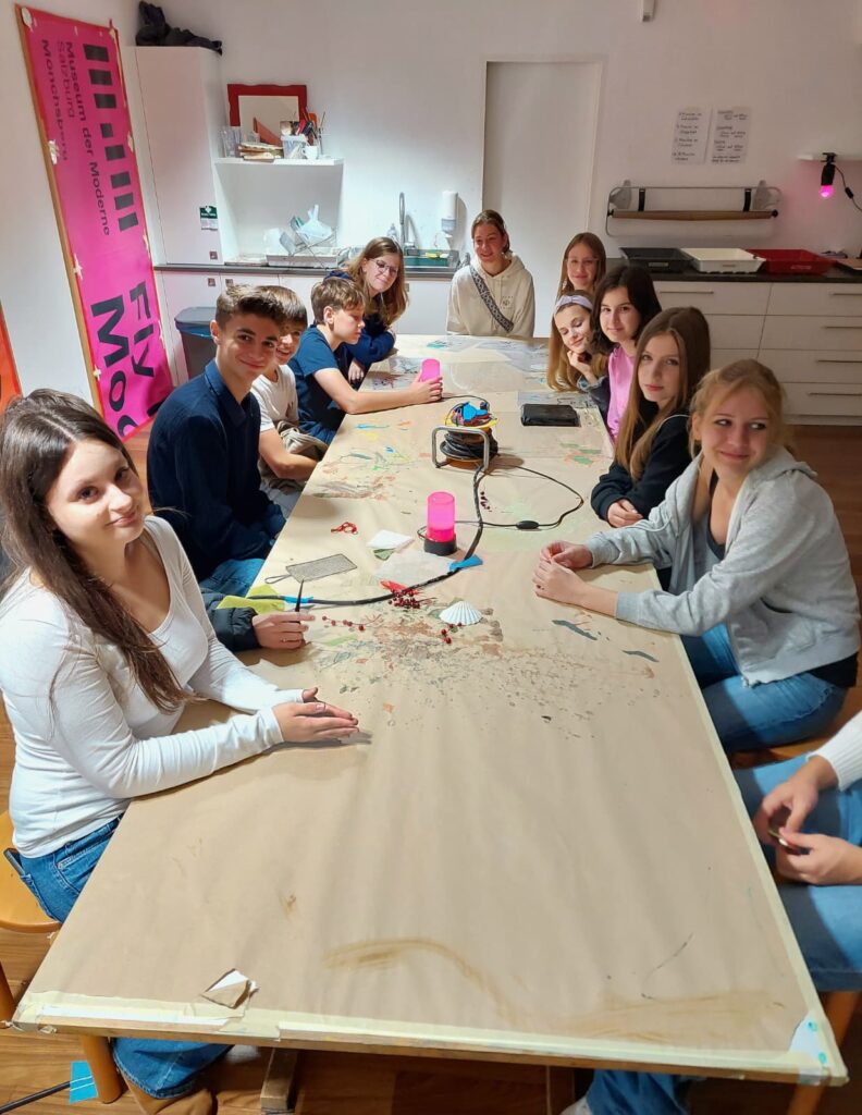 Ein besonderes Highlight war der Workshop: Die Jugendlichen stellten eigene Fotogramme her und entwickelten diese wie in einer klassischen Dunkelkammer. Auf diese Weise wurde die Fotografie nicht nur theoretisch vermittelt, sondern auch praktisch erlebbar. Die Exkursion bot eine gelungene Kombination aus Wissen, Anschauung und kreativem Ausprobieren – ein spannender Einblick in die Welt der Fotografie.