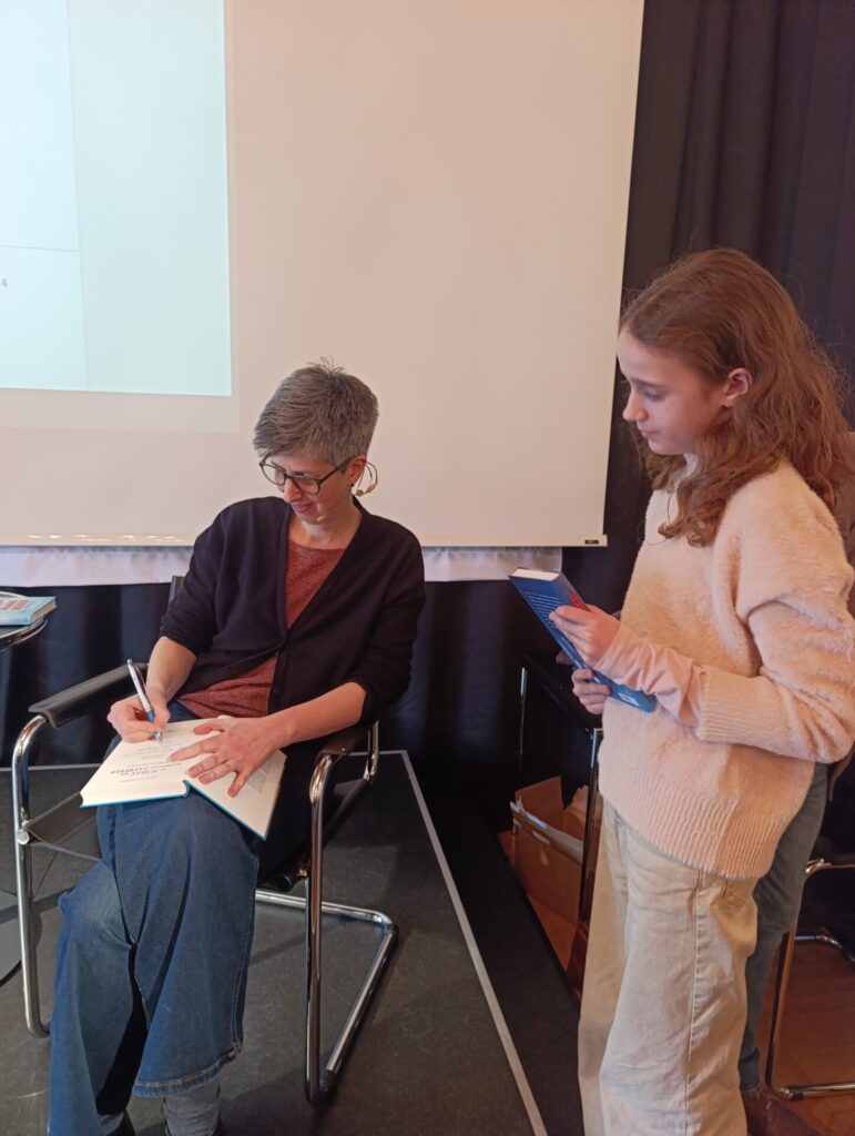 Mit viel Humor, spannenden Szenen und lustigen Einfällen brachte die Autorin die Geschichte zum Leben. Die Schülerinnen und Schüler lachten, rätselten mit und stellten so viele Fragen, dass Maggie Müller fast einen neuen Fall hätte lösen müssen. Ein literarischer Vormittag, der bewies: Lesen kann richtig Spaß machen!