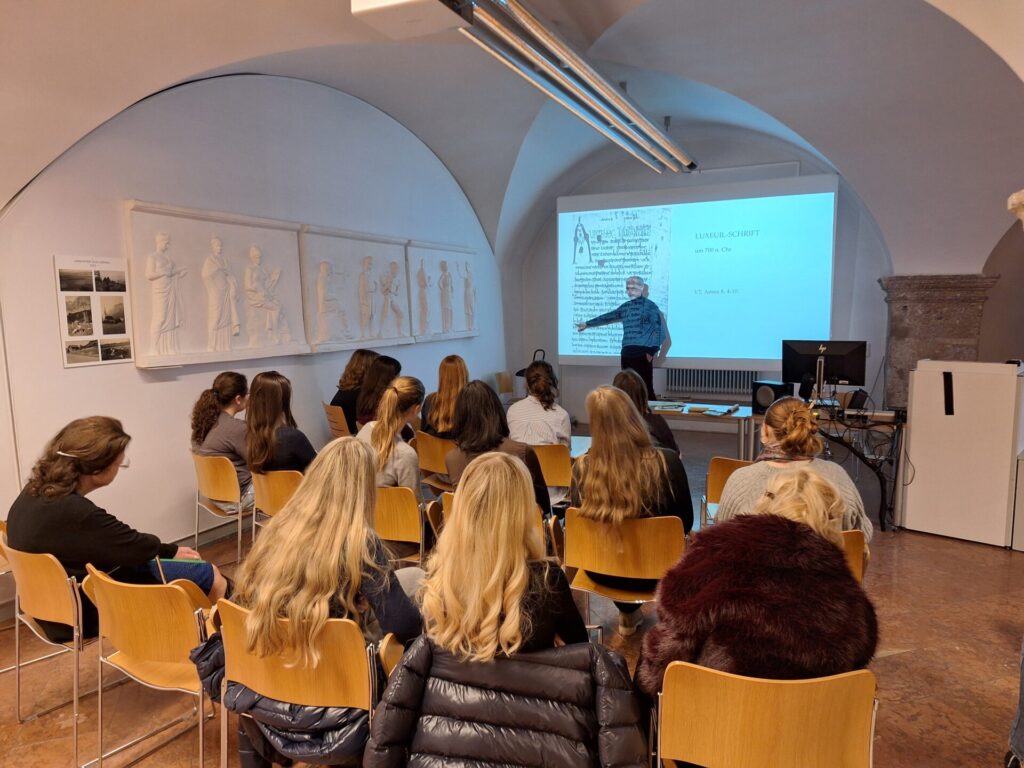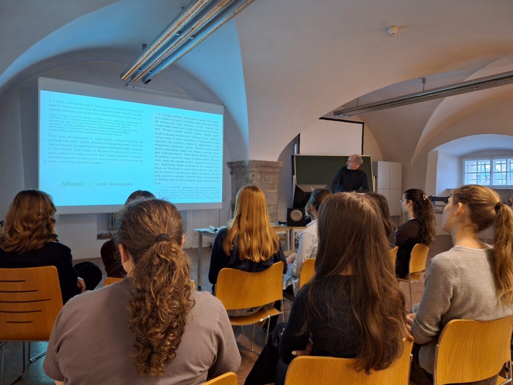 Am Freitag, 6. Februar 2026, unternahmen die Lateinschüler:innen der 5R, 6R, 7R und 8R einen Lehrausgang an den Fachbereich Altertumswissenschaften der Paris Lodron-Universität Salzburg, um dort einen „Vormittag der Altertumswissenschaften“ zu verbringen. Im Zuge dieses zweiteiligen Workshops setzten sie sich sowohl kreativ als auch sprachwissenschaftlich mit der Antike auseinander.