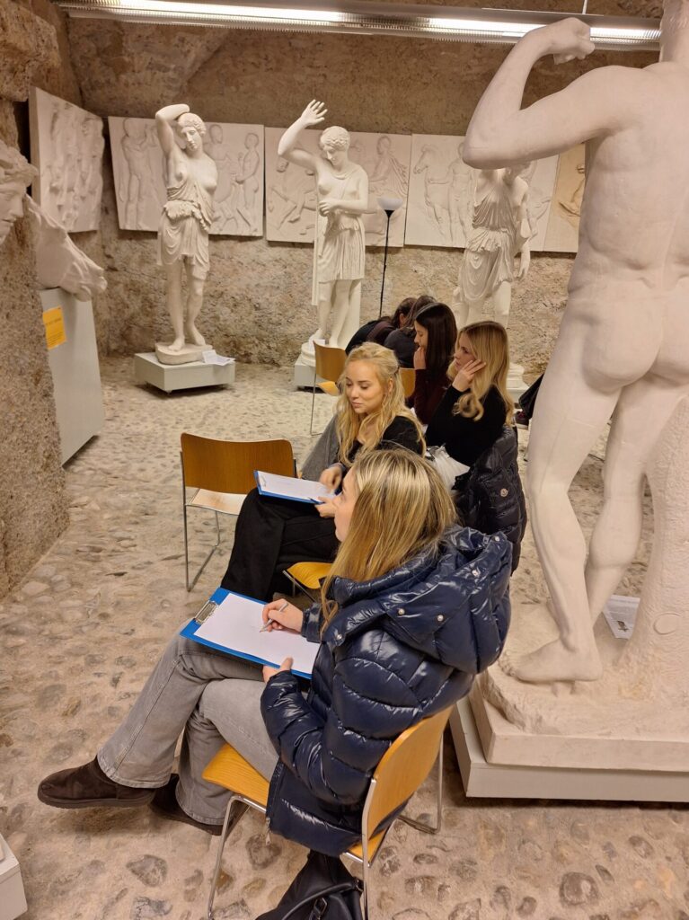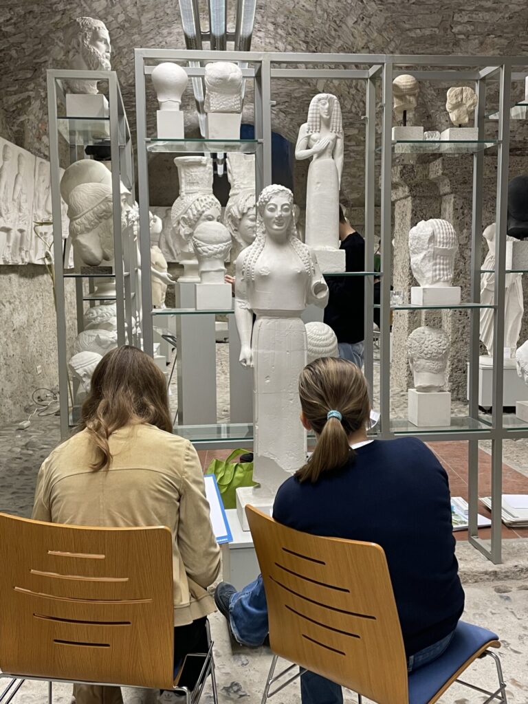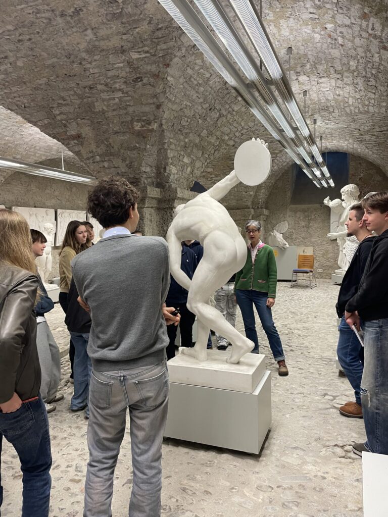 Zusätzlich erhielten wir eine Erklärung, wie solche Abgüsse gemacht werden und warum sie für den Unterricht wichtig sind. So lernten wir beispielsweise, dass die abgegossenen Figuren Darstellungen archaischer Kunst bis zur Kunst der römischen Kaiserzeit sind, die dadurch greif- und erlebbar wird.