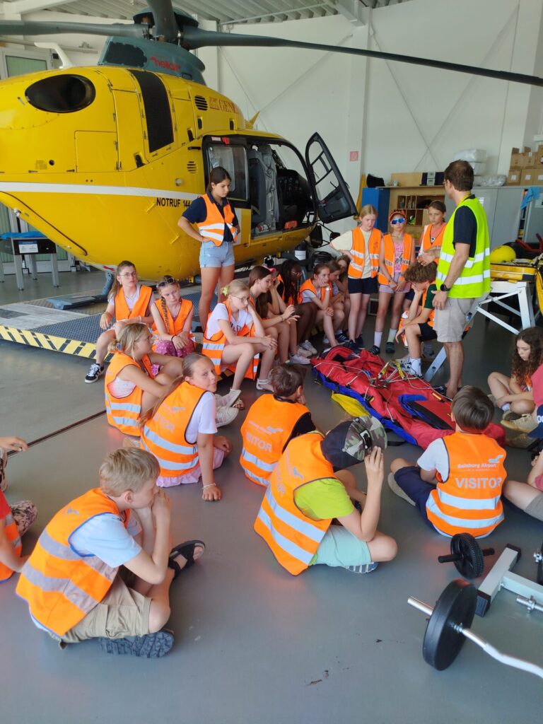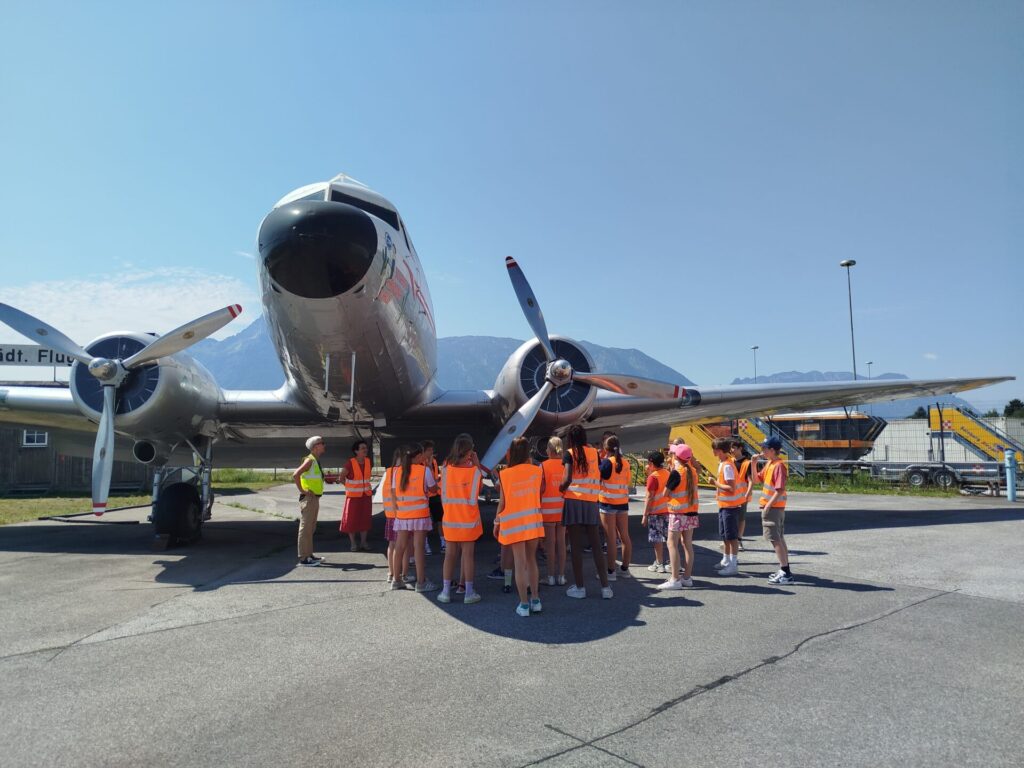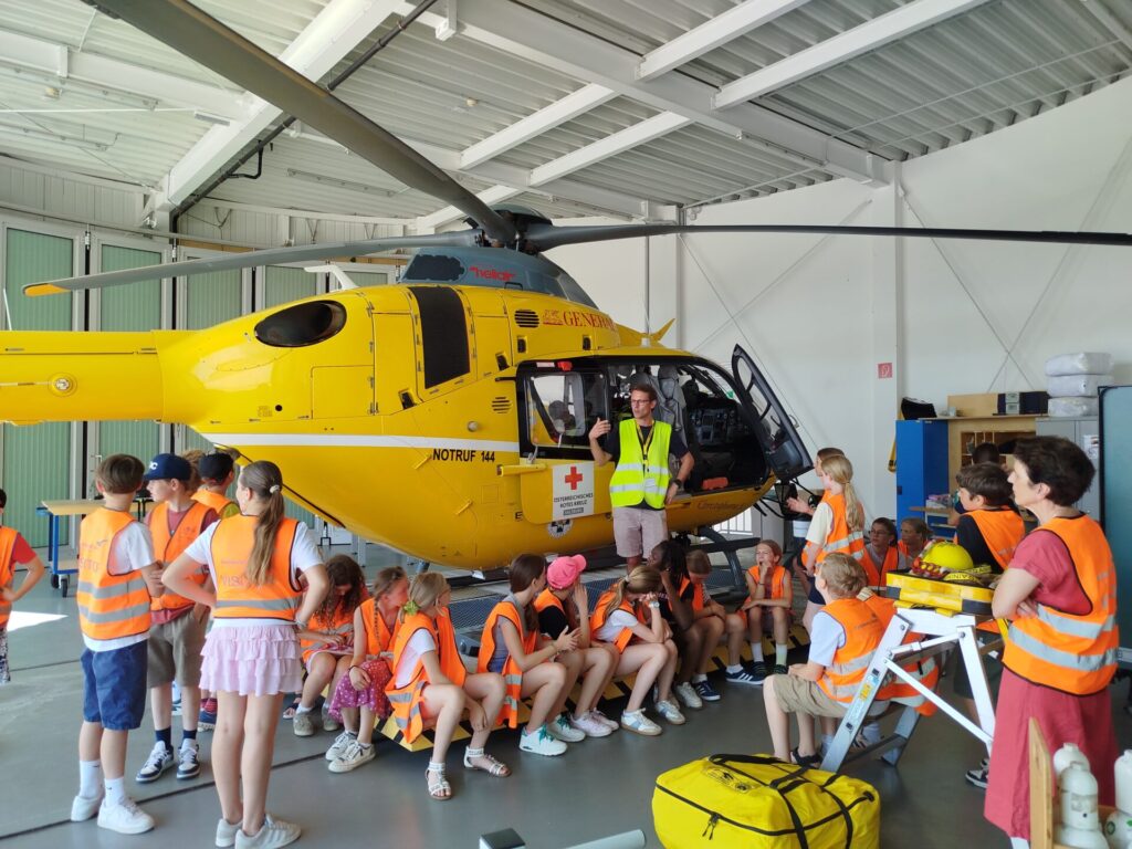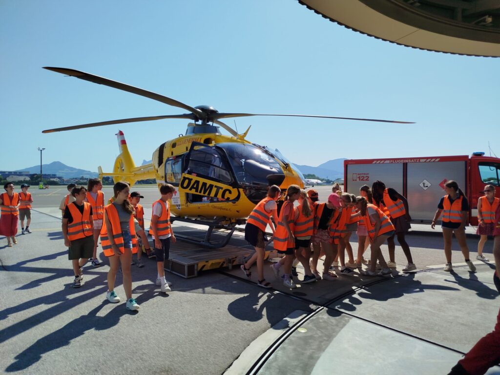 In der letzten Woche vor den Ferien durfte die 3c einen ganz besonderen Ausflug erleben. Dr. Fleischmann, Notarzt bei der Flugrettung Salzburg, zeigte den Schülerinnen und Schülern die Einsatzstelle und den Rettungshubschrauber. Nach einem Einsatz durften die Kinder sogar dabei helfen, den Hubschrauber wieder in den Hangar zu ziehen. Anschließend fand eine Führung über das Gelände statt. Besonders beeindruckend war der Besuch bei der Flughafenfeuerwehr.